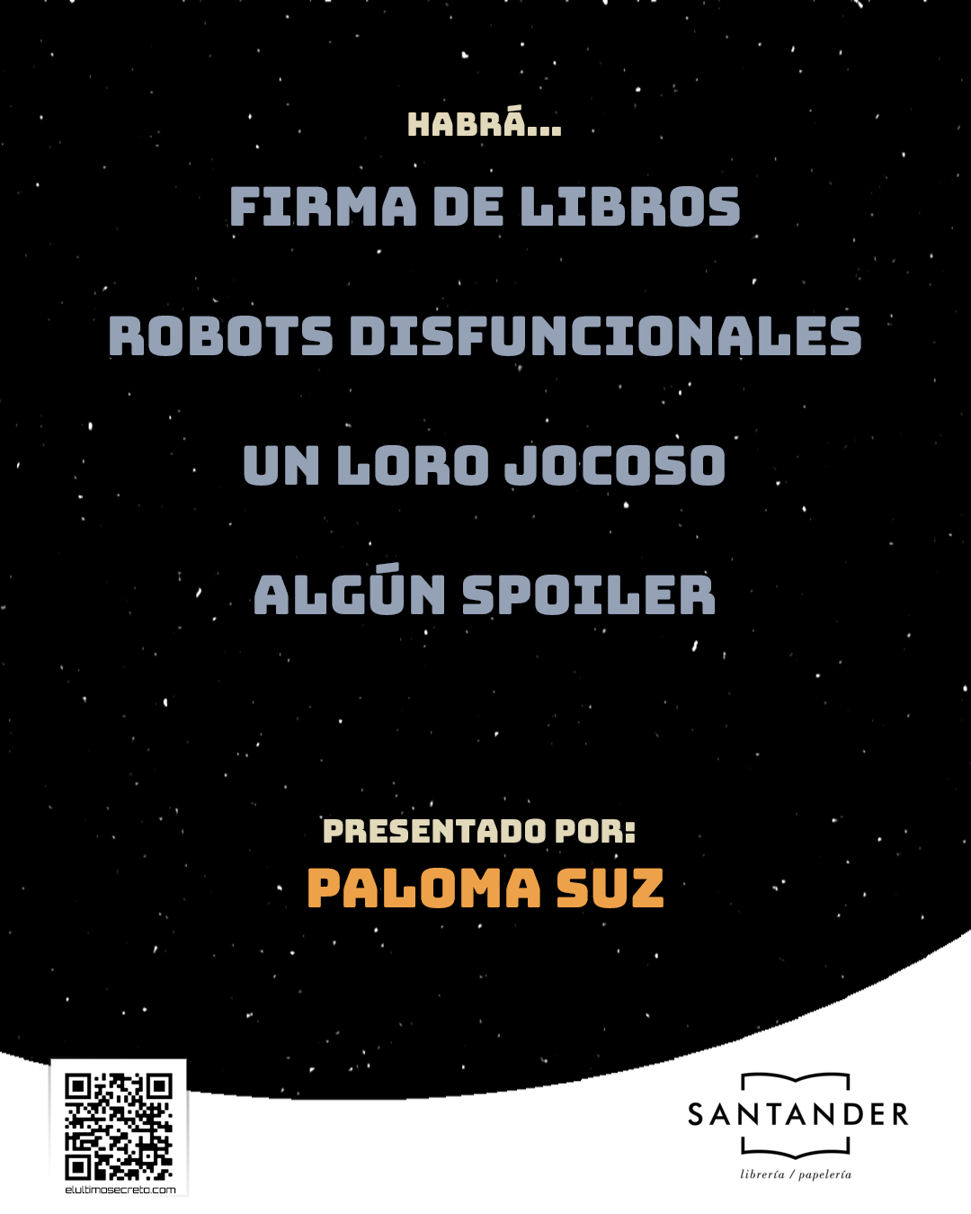 Obviamente será en Aluche, en la librería Santander (C/ Valmojado 291), el día 11 de abril a las 12:00. La entrada será libre hasta completar aforo. Habrá firma de libros, llevaré marcapáginas y mis famosas cartas de presentación. Según se vaya acercando la fecha os podré ir confirmando más detalles. De momento os puedo adelantar que la maestra de ceremonias será mi amiga Paloma.